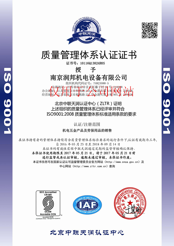 潤邦公司再次順利通過ISO9001質(zhì)量管理體系認證